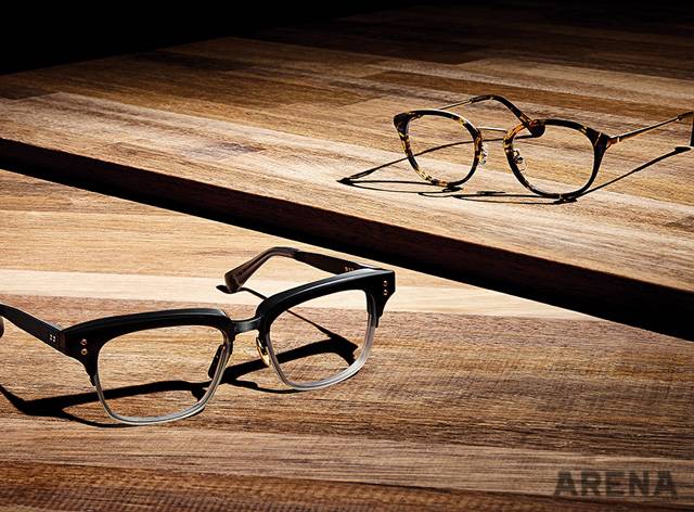 (왼쪽부터) 굵직한 오버사이즈 반뿔테 안경 가격미정 디타 by 나스월드, 오묘한 색감의 마블링이 돋보이는 콤비네이션 안경 38만5천원 빅터 앤 롤프 by 시원아이웨어 제품.