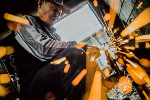 <<사진 = 설 장인이 도끼날을 벼리고 있다. 불똥이 얼굴로 튀었다. 그는 줄곧 도끼를 응시했다.>>