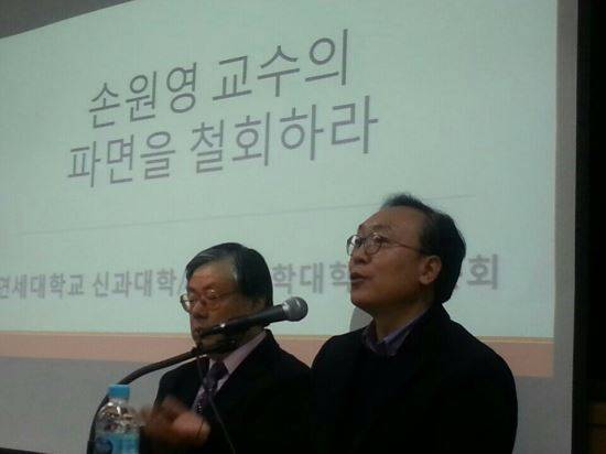 연세대 신학과 및 연합신학대학원 동문회는 24일 오후 4시 서울 연세대 신학관 105호에서 기자간담회를 열고 "서울기독대는 손원영 교수의 파면을 철회하라"고 촉구했다.