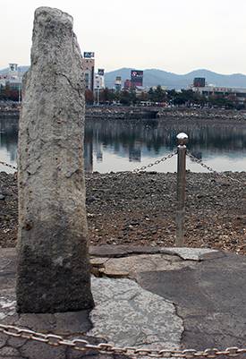 | ▲ 여수 선소 유적의 계선주. 배를 묶어두는 데 쓰인 기둥으로 흔히 여겨진다. |