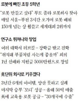 대학들도 잇달아 학부에 로봇 전공학과를 개설하고 있다. 한양대 광운대 등이 로봇학부를 운영 중이다. 학부 때는 기계공학 등을 전공한 뒤 대학원 때 로봇을 공부하는 경우가 더 많다. 서울대는 금속이 아니라 실리콘 등을 활용한 소프트로봇 연구소도 운영하고 있다.