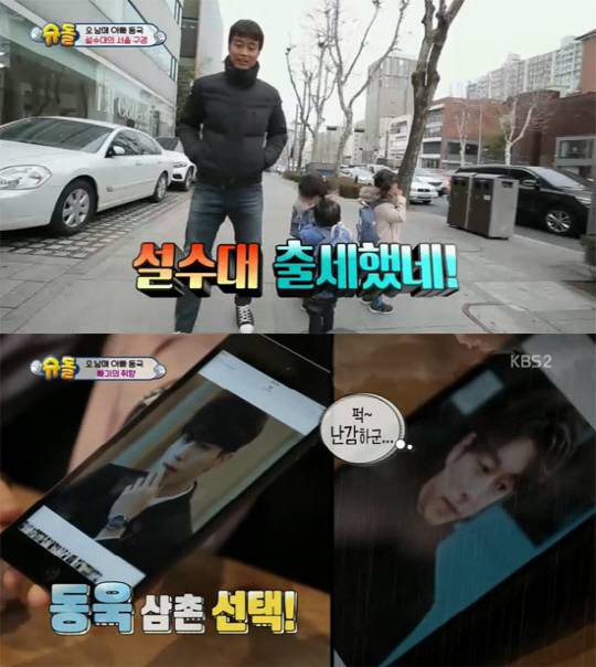 하지만 설수대가 "동욱삼촌"의 사진을 보며 반가워 했고, 공유와 이동욱의 사진을 비교 한 대박이는 "동욱삼촌"을 콕 집어 공유를 '퍽 난감'하게해 웃음을 안겼다.