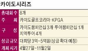 한국프로골프협회(KPGA)와 카이도골프코리아는 27일 서울 한국프레스센터에서 기자회견을 열고 올 시즌 4개 대회를 새로 열고 4개 대회를 공동 후원하는 내용의 ‘카이도 시리즈’ 신설 계획을 발표했다.