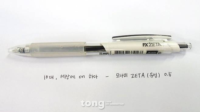 일본 펜 중에서도 유독 사랑받는 ‘제트 스트림’. 깔끔한 필기 감으로 많은 학생들이 선호하는 제품이다. 이와 가장 비슷한 필기감을 자랑하는 국산 펜이 있다. 바로 ‘모나미 ZETA 0.5,mm’. 디자인부터 고급스러워 보이는 모나미 ZETA는 ‘0.5mm’, ‘0.7mm’, ‘1.0mm’ 의 세 가지 굵기로 구성되어있다. 실제로는 제트스트림보다는 굵게 써지는 느낌이다. 그래서 '제트스트림의 0.7mm' 필기감을 원한다면, '모나미 ZETA 0.5mm'를 추천한다. 가격은 1000원이다. 노트 정리의 필수품 ‘모나미 플러스 S’