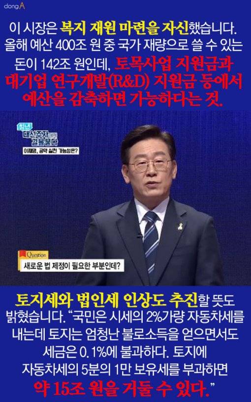 토목사업 지원금과 대기업 연구개발(R&D) 지원금 등에서 예산을 감축하면 가능하다는 것.