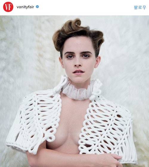 그는 최근 베니티페어 3월호 화보에서 노브래지어 차림에 흰색 크로켓 재킷을 입었다. 페미니스트들이 엠마 왓슨에 비난을 퍼부었다.