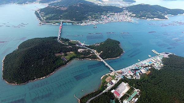 | ▲ 완도 노화도(맨 위쪽)와 보길도(맨 아래쪽)를 잇는 징검다리 역할을 하는 섬이 장사도(중앙)다. 세섬이 대교로 연결돼 살기가 훨씬 편해졌다. |