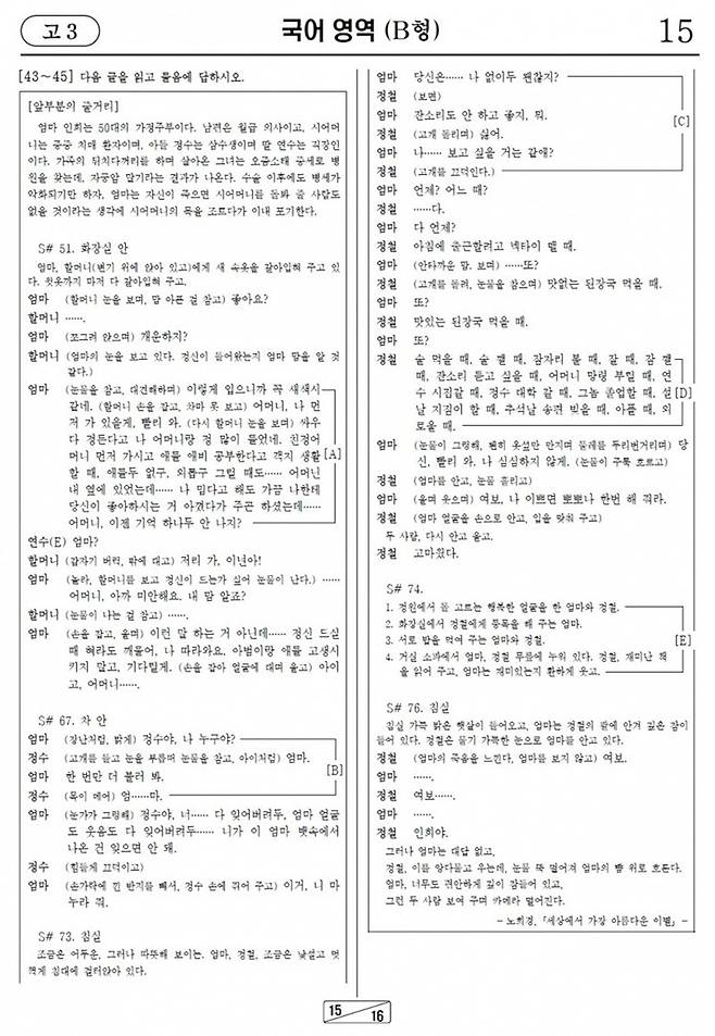 2017년 3월 모의고사 수험생 가슴을 울린 필적 확인용 문구