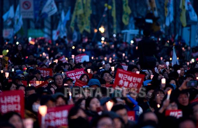 SOUTH KOREAN, SEOUL, MAR. 11, 2017 : Protesters celebrate the Impeachment of President Park Geun-hye by Constitutional Court in Seoul, South Korea, March 11, 2017. Photographer: Steve Jo / PENTA PRESS