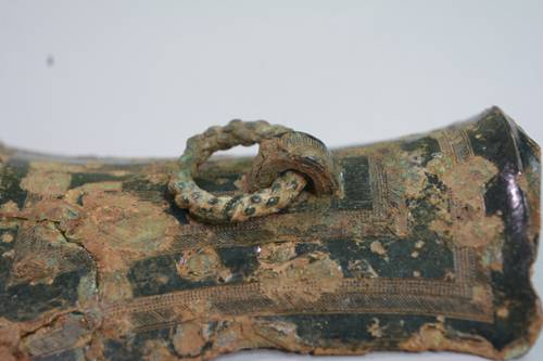| 검파형 동기 하단. 새끼줄을 꼰 모양의 원형 고리가 보인다. 사진제공=전북문화재연구원 |