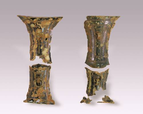 | 가운데가 두 동강 난 검파형 동기들. 사진제공=전북문화재연구원 |