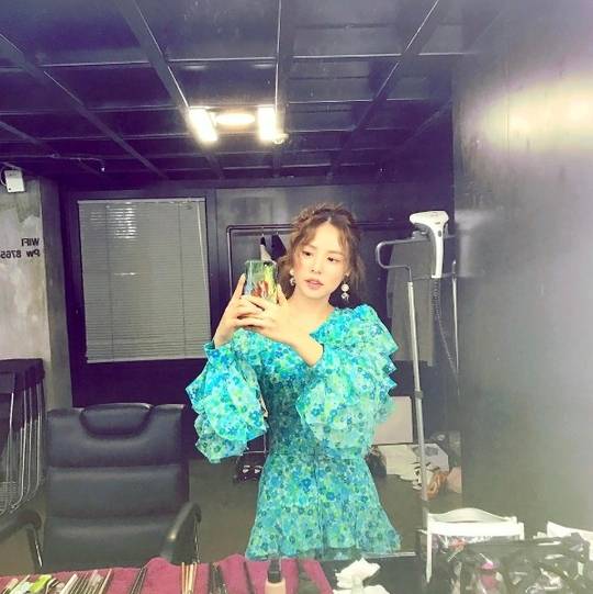 사진에는 거울을 이용해 셀카를 찍고 있는 민효린의 모습이 담겨있다. 화려한 꽃무늬 원피스를 착용한 민효린의 미모가 시선을 사로잡는다.