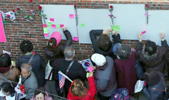 커피숍을 운영하는 심모(29·여)씨는 “친박단체 집회 참가자들이 알아볼까 금방 지울 수 있는 소심한 이벤트 중이다”면서도 “하루빨리 이 상황이 끝났으면 좋겠다”고 말했다.