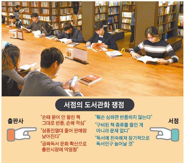 양측 입장이 첨예하게 갈리는 가운데 고객 의견도 분분하다. “훑어보고 구매여부 결정할 수 있으니 독자, 서점, 출판사 모두에게 좋은 것 같다”며 독서공간 마련에 환영하기도 하지만, “손때 묻은 책을 누가 사겠냐”는 부정적 시선도 만만치 않다. “대형서점이 유리한 위치에 있는 만큼 샘플용 책을 따로 구매해 출판사 피해 최소화에 앞장서야 한다”는 대안도 나온다.