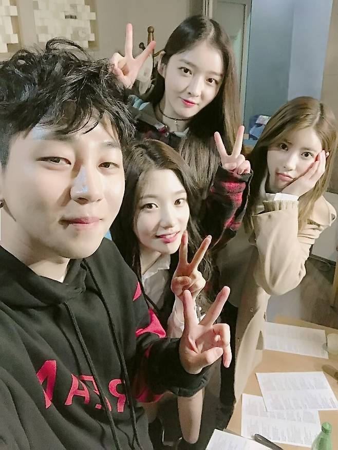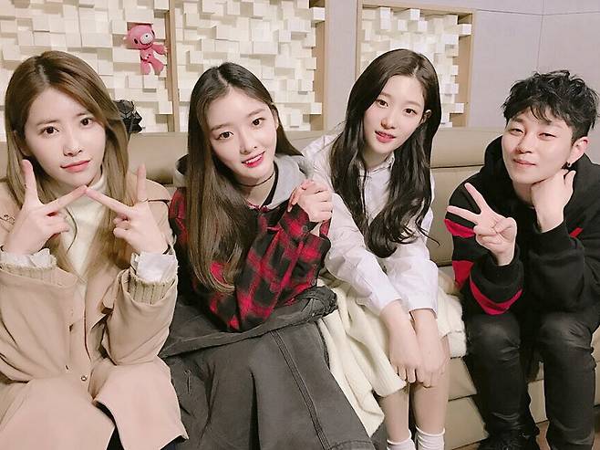 공개된 사진 속 정채연과 은진, 기희현은 상큼한 미소를 짓고 있다. 이어 딘딘은 장난기 넘치는 표정과 브이자를 그리며 카메라를 응시하고 있다.