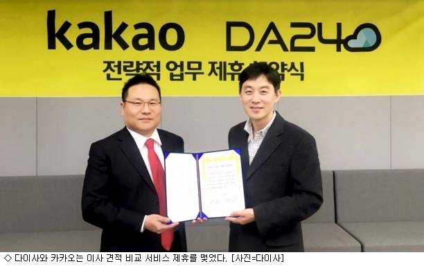 이사 비교 견적 서비스를 제공하는 '다이사(DA24)'는 카카오와 서비스 제휴 및 광고 협력 제휴를 맺었다고 22일 발표했다.