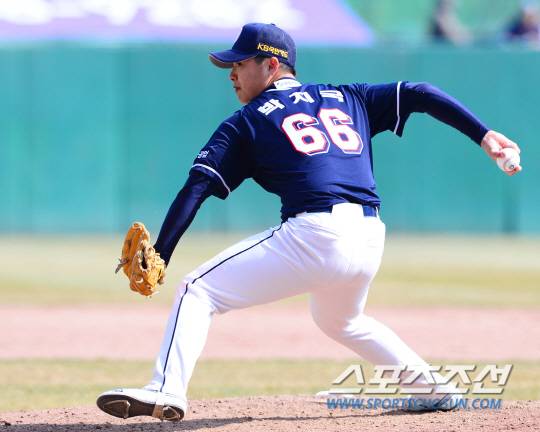 22일 인천 SK행복드림구장에서 KBO리그 시범경기 SK 와이번스와 두산 베어스의 경기가 열렸다. 6회 2017년 신인 두산 박치국이 마운드에 올라 힘차게 투구하고 있다.