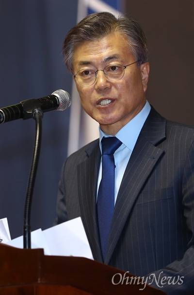 | ▲ 22일 오후 서울 송파구 잠실실내체육관에서 열린 한국노총 전국단위노조 대표자대회에 대선예비후보인 더불어민주당 문재인 전 대표가 발언을 하고 있다. |