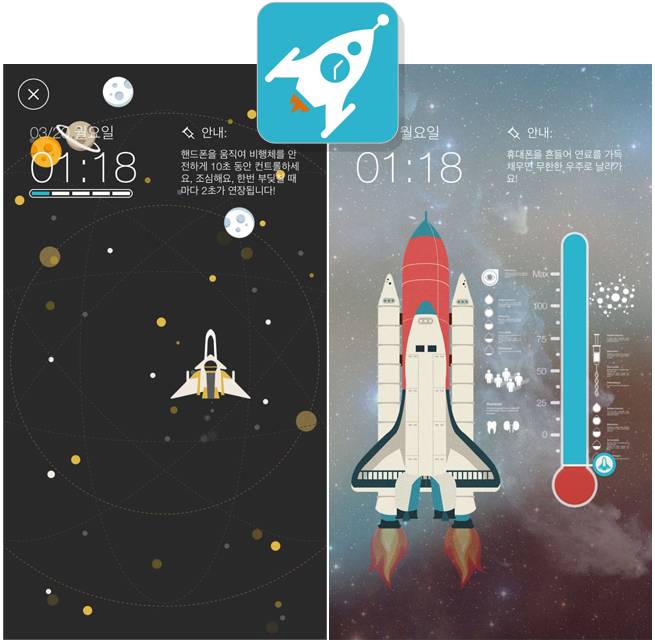 하루를 재미있게 시작하고 싶다면 Rocket Alarm(안드로이드, ios 지원) /무료여기서 사용자는 우주비행사이고, 우주를 탐험해야 한다. 난이도 1~5까지 다양한 종류의 기상 미션을 거쳐야 알람을 끌 수 있다. 휴대폰을 흔들고, 수학 문제를 풀고, 휴대폰을 향해 미소를 짓고, 바람을 불어주는 등 어이없는 각종 미션들을 수행하다 보면 무거웠던 눈꺼풀이 한결 가벼워진다. 아기자기하고 세련된 인터페이스는 옵션. 재미★★★★★ 강력함★★★