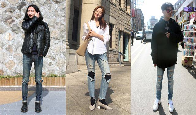 양복 바지나 등산 점퍼를 찢어 입을 생각은 아무도 하지 않는다. 청바지는 왜 찢어 입기를 허락받은 것일까. 박세진 패션 칼럼니스트는 28일 “1960년대 이후 청바지를 저항의 패션으로 입기 시작한 이후, 수많은 사람들이 입어낸 성과”라고 말했다. 그는 “너도 나도 자유롭게 입는 아이템이기 때문에 새 것이든 낡은 것이든 찢어진 것이든 용인되는 것”이라고 했다.