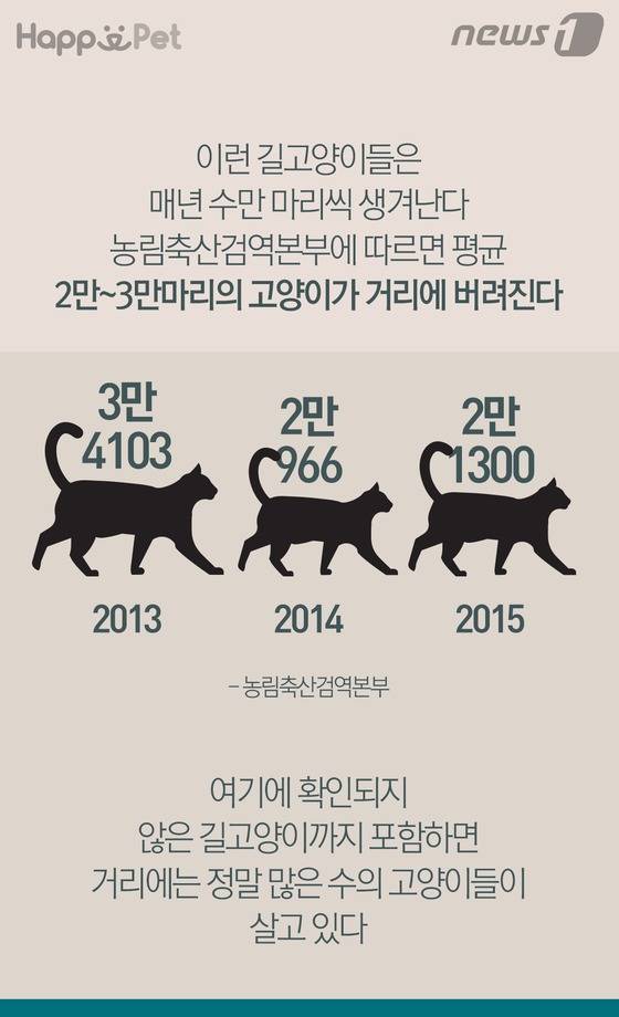 이기림 인턴기자,최진모 디자이너 = 농림축산검역본부에 따르면 유기되는 고양이는 연평균 2만~3만마리에 이른다.