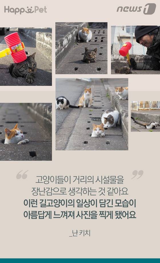 (서울=뉴스1) 이기림 인턴기자,최진모 디자이너 = 농림축산검역본부에 따르면 유기되는 고양이는 연평균 2만~3만마리에 이른다. 조사되지 않은 고양이들과 이미 거리를 떠도는 고양이들을 더하면 상당히 많은 수의 길고양이가 있다는 것을 추측할 수 있다. 이 길고양이들은 많은 사람들에게 더럽고, 시끄러운 존재로 알려져 있다. 그러나 일본의 사진작가 냔 키치의 사진을 보면 그런 선입견이 사라진다. 오히려 귀여운 개구쟁이 모습에 호감을 갖게 된다. 냔 키치의 사진을 소개한다.