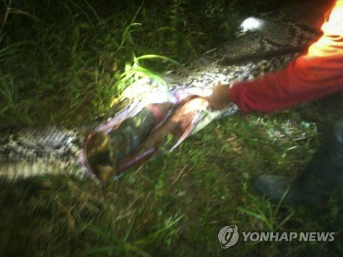 epa05878354 A handout photo made available by the West Sulawesi Police on 30 March 2017 shows a villager slicing open a dead python's carcass in Mamuju, West Sulawesi province, Indonesia, 27 March 2017. According to the police, the four-meter long python swallowed an Indonesian man on 27 March. Villagers reportedly killed the python, sliced open its carcass and found the body of a 25-year-old victim. EPA/WEST SULAWESI POLICE HANDOUT ATTENTION EDITORS: GRAPHIC CONTENT --BEST QUALITY AVAILABLE-- HANDOUT EDITORIAL USE ONLY/NO SALES