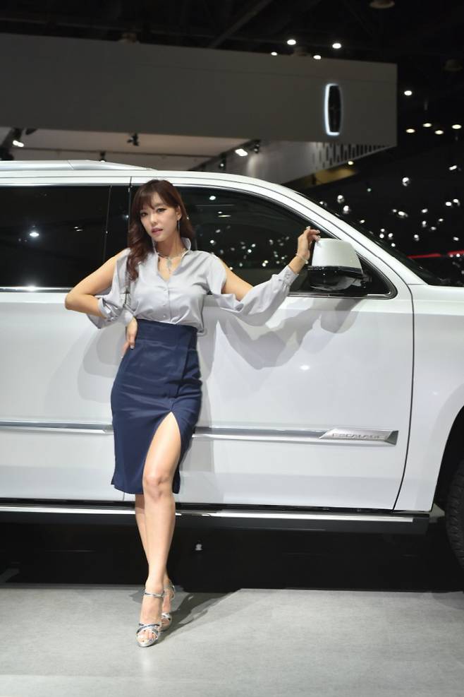 [이데일리 오토in 김하은 기자] 서울모터쇼가 일산 킨텍스에서 열린 가운데 레이싱 모델 강이나가 캐딜락 부스에 전시된 에스컬레이드와 함께 포즈를 취하고 있다.