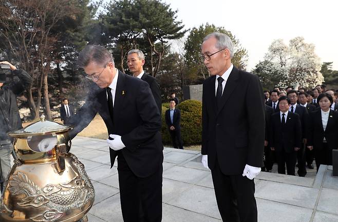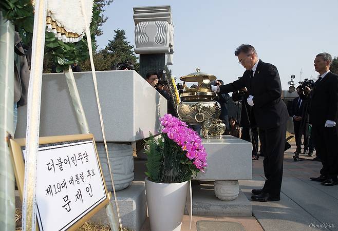 [오마이포토] 문재인, 이승만-박정희-김대중-김영삼 묘소 참배