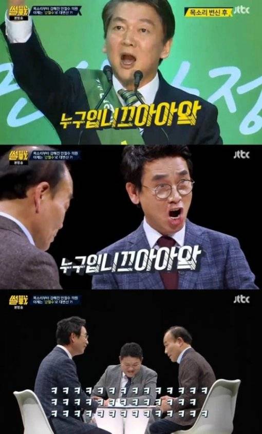 '썰전' 유시민 "누구입니끄아아앜!" 안철수 목소리 성대모사에 스튜디오 초토화