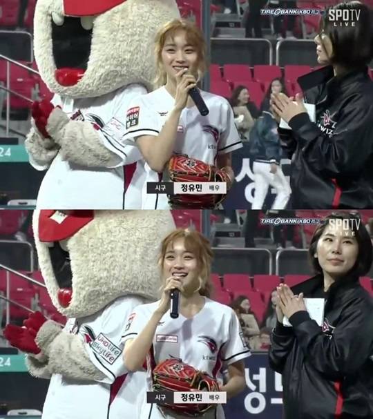 배우 정유민이 완벽한 자세로 무결점 시구를 펼쳐 화제다.