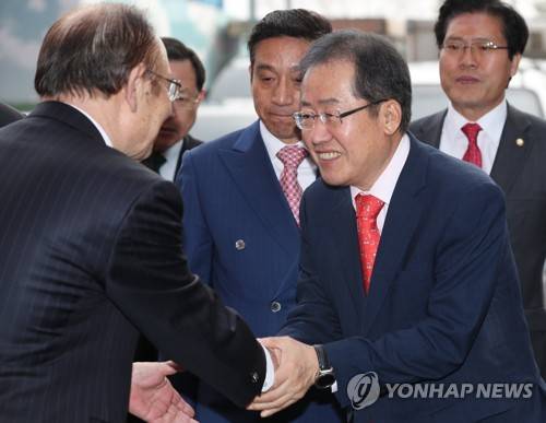 (서울=연합뉴스) 김주형 기자 = 자유한국당 홍준표 대선 후보(오른쪽)가 9일 오전 서울 여의도순복음교회를 방문하고 있다. 홍 후보는 이날 조용기 원로목사와 이영훈 한국기독교총연합회 회장을 만난다. 2017.4.9