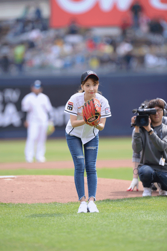 경기에 앞서 걸그룹 레인보우 지숙이 시구를 하고 있다.