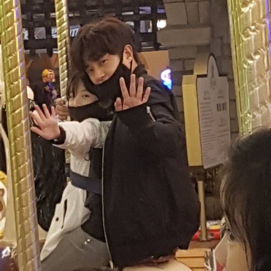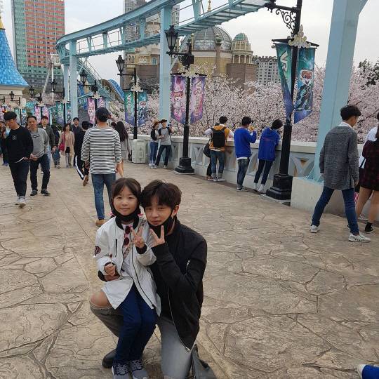 사진 속 김민석과 신린아는 한 놀이공원을 찾아 즐거운 하루를 보내고 있다.