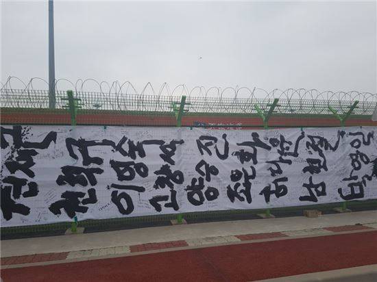 철조망 끝 부분에는 약 30m에 이르는 대형걸개가 걸려 있다. 미수습자 9명의 이름과 함께 하루 빨리 가족의 품으로 돌아오길 간절히 바라는 시민들의 메시지가 빼곡히 쓰여 있다.