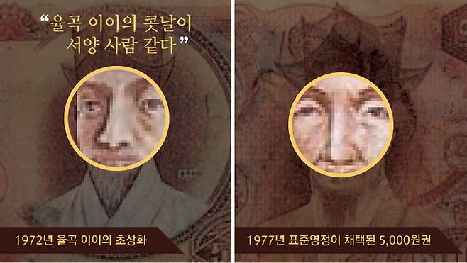 표준영정의 필요성이 제기된 것은 1972년 율곡 이이의 초상화를 둘러싼 논란 때문이었습니다. 당시 오천 원권이 발행되고 얼마 지나지 않아 율곡 이이의 콧날이 서양 사람 같다는 비판이 일었습니다.
