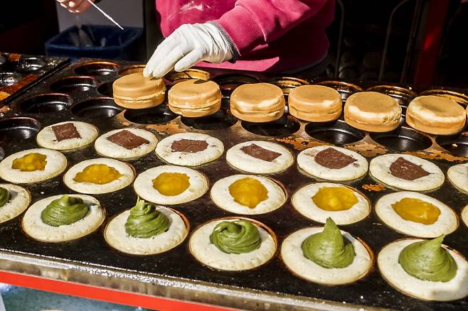 홍두병도 인기다. 직역하면 '붉은팥이 든 과자'다. 길에서 흔히 볼 수 있는 국화빵 비슷하게 생겼다. 대만에서 인기 있는 간식 중 하나로, 큼직하고 부드러운 빵에 팥소가 듬뿍 들어갔다. 의외로 달지 않아 생각보다 많이 먹을 수 있다. 크림치즈와 망고, 다크초콜릿, 녹차 등을 넣은 것도 인기다.