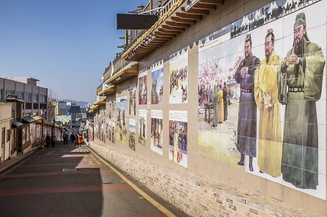 짜장면으로 배를 채우고 맛있는 주전부리를 양손 가득 들었다면, 본격적으로 차이나타운 여행에 나서보자. 짜장면박물관에서 삼국지벽화거리가 가깝다. 《삼국지》의 명장면이 벽화 160점으로 살아난 곳이다. 《삼국지》의 역사적 사실을 고사성어와 그림으로 표현해, 길을 걷다 보면 《삼국지》 내용이 새록새록 떠오른다.