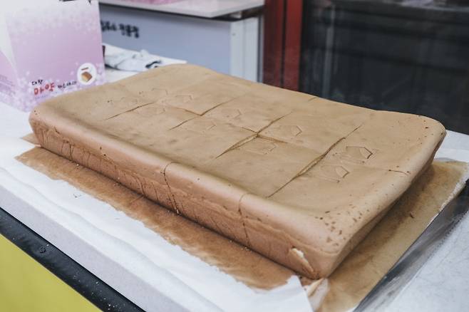 대왕카스테라를 파는 집도 많다. 역시 대만에서 건너온 주전부리다. 두부판만 한 카스텔라를 큼직하게 썰어 판다. 부드럽고 촉촉하고 달콤한 맛 때문에 젊은 층에서 폭발적인 인기다.