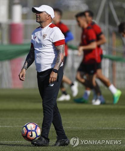 epa05903979 Sevilla's FC head coach, Jorge Sampaoli, attends the team's training session at the club's sports facilities in Seville, Spain, 12 april 2017. According to media, Sampaoli is the main candidate to coach Argentina's national soccer team after Edgardo Bauza's dismissal last 10 April 2017. EPA/Julio Munoz