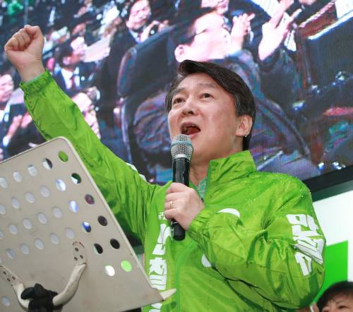 | 국민의당 안철수 대선후보가 17일 오후 전북 전주시 전북대 앞에서 열린 전북 국민 승리 유세 및 전북 발대식에 참석해 지지를 호소하고 있다. 연합뉴스 |