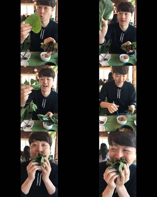 공개된 영상 속에는 상추, 깻잎, 배추, 쑥갓 등의 초록색이 푸릇한 푸성귀들과 제육볶음 고기 한 점, 밥 한 숟가락, 된장 한 스푼을 넣어 식사하는 유상무의 모습이 담겨 있다.