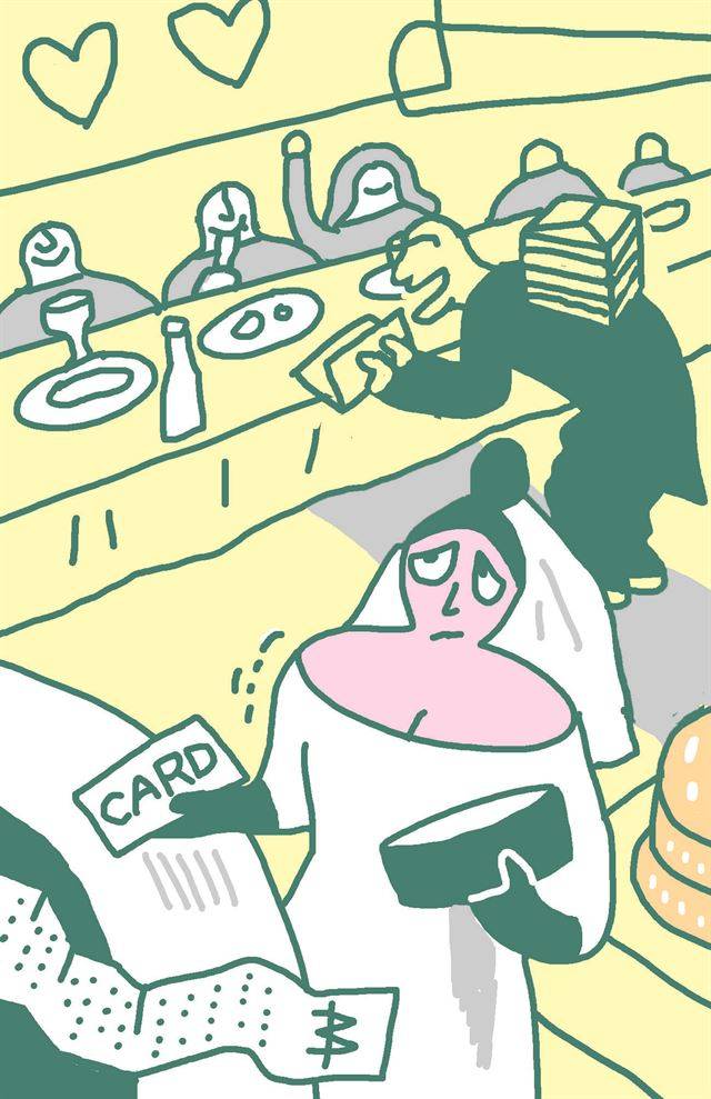 5월 초 결혼을 앞두고 주말마다 '청첩장 모임'(청첩장을 전달하기 위한 식사모임)을 가지고 있는 예비신부 이모(28)씨는 모임이 끝난 뒤 계산대 앞에 설 때마다 표정이 굳어진다.