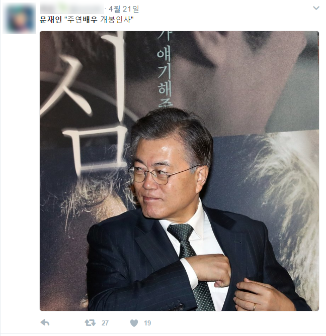 (▲ 한 영화 시사회에 참석한 문재인 후보를 배우에 빗대는 지지자의 트윗)