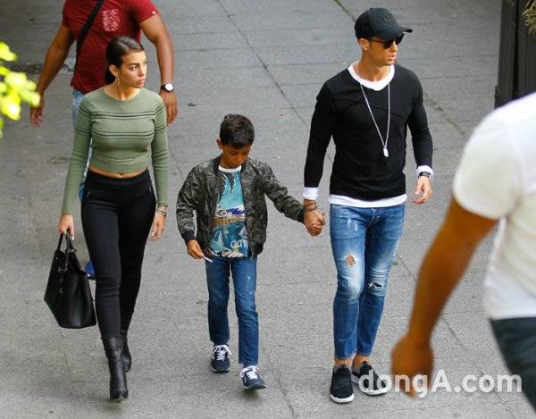공개된 사진 속 호날두는 캡모자와 선글라스를 쓰고 맨투맨과 청바지를 입은 캐주얼한 모습. 그는 길거리를 돌아다니는 내내 호날드 주니어의 손을 꼭 붙잡고 ‘아들 바보’ 면모를 드러냈다. 세 사람은 압도적인 비주얼로 시선을 사로잡았다.