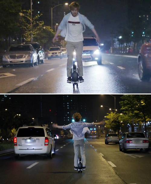| 지난 2015년 방영된 `후아유-학교 2015`에서 보호장비 없이 `전동휠` 타고 주행하는 장면. |