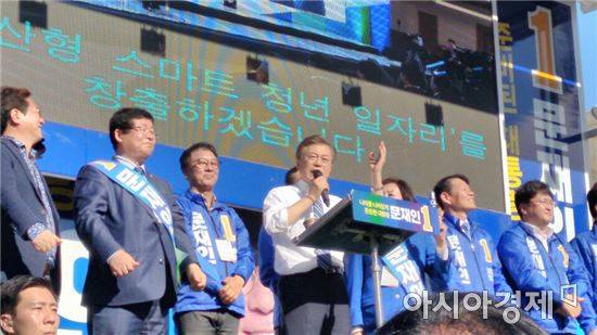 문 후보는 이어 경남 진주를 찾았다. 문 후보는 1만5000명이 모인 대안동 차없는 거리에서 지지를 호소했다. 문 후보는 "오랫동안 새누리당 지지가 습관이 돼서 아직 저 문재인에게 마음이 안 열린 분들 계시지 않냐"면서 "걱정할 일 전혀 없다"고 말했다.