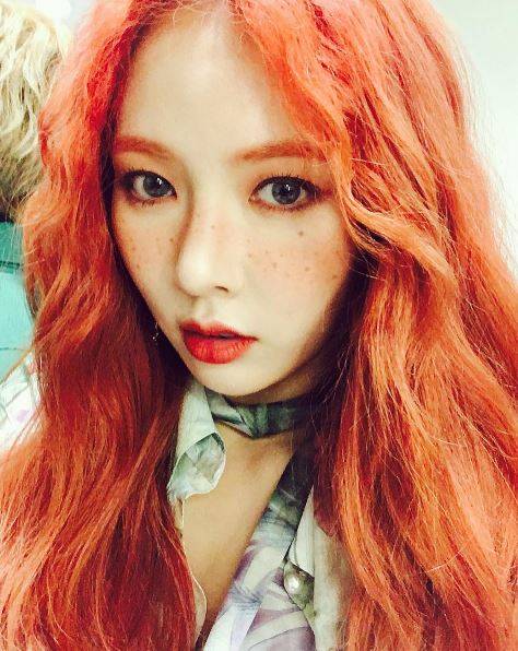 공개된 사진에서 현아는 붉은 빛이 감도는 머리와 양볼에 주근깨가 잔뜩 그려진 모습으로 카메라를 바라보고 있다.