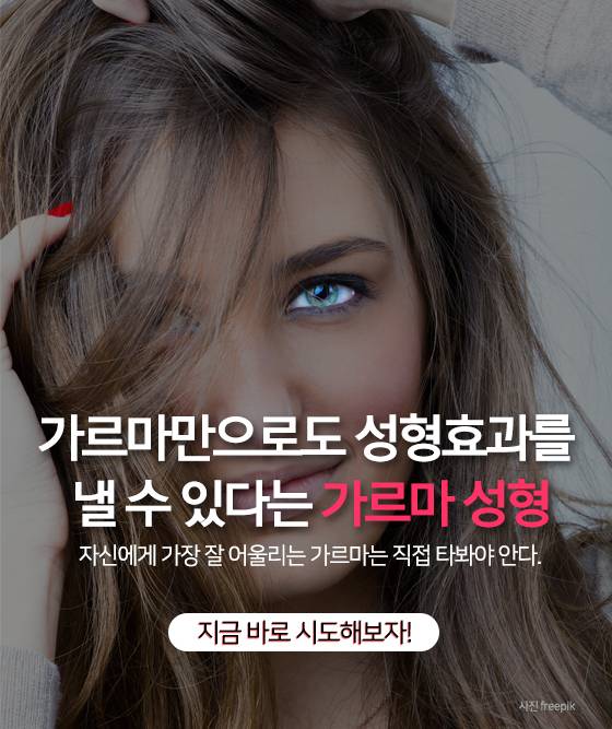 또 가르마를 탈 때는 젖은 상태에서 원하는 방향을 잡고 말리면서 가르마 반대 방향으로 따뜻한 바람을 쐬주면 자연스럽게 볼륨감이 생긴다. 일직선으로 가르마를 잘 못 타면 얼굴이 길어 보일 수 있으니, 지그재그나 원형으로 가르마를 타서 두피가 많이 노출되지 않도록 한다. 가르마만으로도 성형효과를 낼 수 있다는 가르마 성형으로 자신에게 가장 잘 어울리는 가르마를 연출해보자.