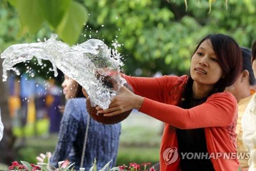 epa05954800 Myanmar Buddhist devotees pour water onto the banyan tree during the Kasone Festival at the holy Shwedagon Pagoda in Yangon, Myanmar, 10 May 2017. Myanmar people celebrate Kasone Festival on Kasone Full Moon Day, also known as Buddha Day, to mark the birth and the enlightenment of the Buddha at the foot of a banyan tree. EPA/HEIN HTET